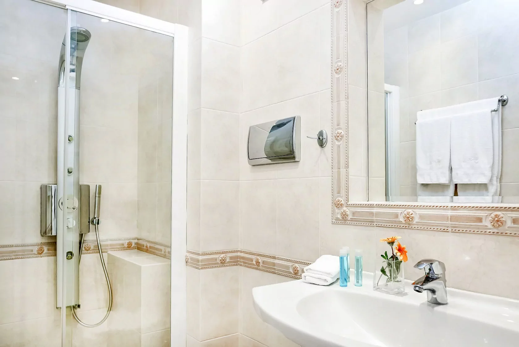 > this room can accommodate up to three guests, let us know if you’d like to add one more person to your room for an additional 100€ per person for three nights.